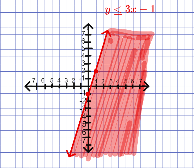 In the olden days of algebra, if you graphed an inequality, you just needed to pick two sets of ordered pairs (a.k.a. points) on either side of the line. Then you plugged them in for x and y, respectively, and checked if each pair made the inequality true or false. Finally, you shaded the right area: above or below the line.
