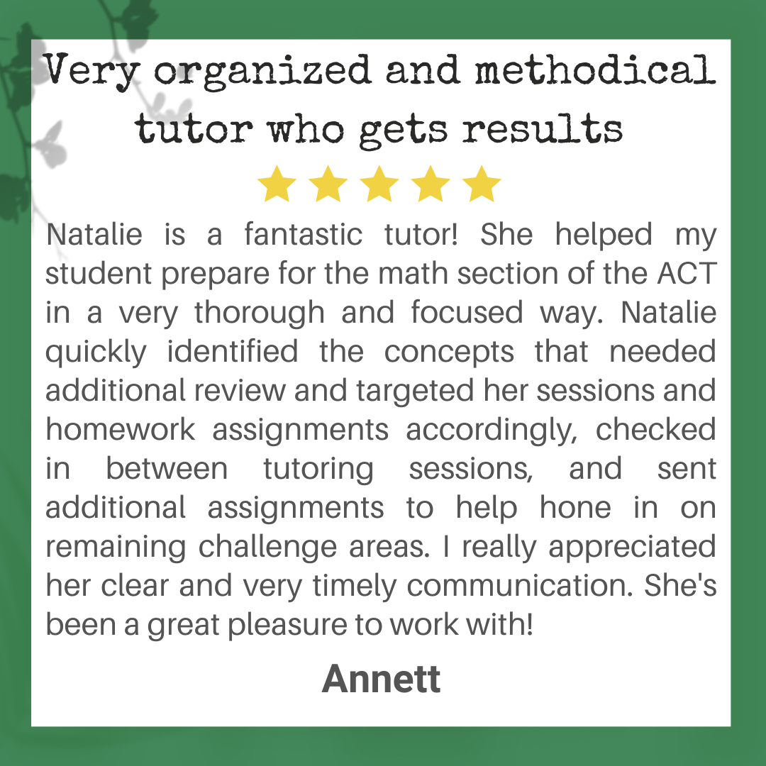 Student Reviews Writing tutoring Test preparation Math Share this: Email a link to a friend (Opens in new window) Email Print (Opens in new window) Print Share on WhatsApp (Opens in new window) WhatsApp Share on Reddit (Opens in new window) Reddit Share on Tumblr Share on Nextdoor (Opens in new window) Nextdoor Post