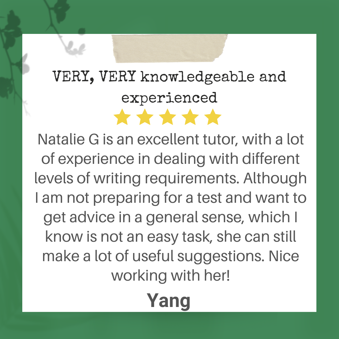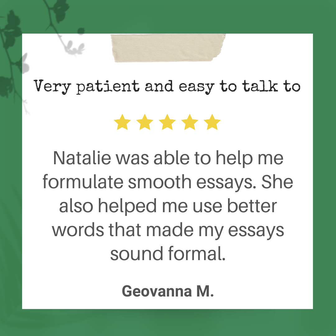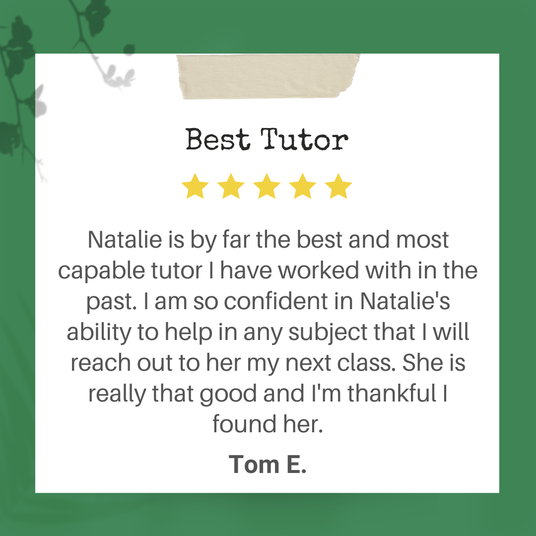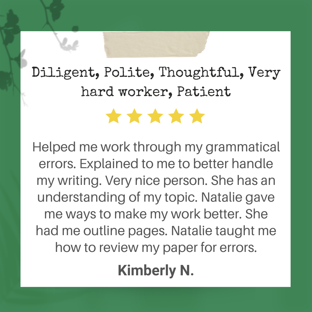 Natalie has been working as a professional writer and editor since 2009, and she started to tutor writing in 2010. Writing tutoring is how she has helped hundreds of students become assertive, enthusiastic writers. Every person in the world has the potential to be a confident, eloquent writer. All it takes is one step โ or sentence โ forward in the right direction. As your child’s writing tutor, she provides the best support for your child on the path to successful writing.